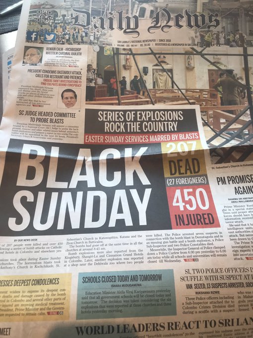 Reuters spreekt inmiddels van 290 doden en zo'n 500 gewonden. Media van Statuur houden nog een slag om de arm en wachten op de officiële persberichten voordat ze vermelden dat de terreur inderdaad weer uit die ene hoek kwam. Tot die tijd wordt er alvast deftig gewaarschuwd dat Sri Lankaanse boeddhisten ook geen lieverdjes zijn (wat overigens niet helemaal uit de lucht gegrepen is). Dat we eigenlijk allemaal islamofoob zijn en dat het allemaal alvast heel slecht afstraalt op de islam, ook al kunnen ze nog niet bevestigen dat het uit de islamitische hoek kwam. Mindere Media meldden natuurlijk wel alvast de islamitische namen van verdachten en organisaties, maar laten we nu even netjes het officiële startschot afwachten tot we ons zelfvoldane zie-je-welletje doen. Totale social media black out in Sri Lanka trouwens, dus informatie reist traag.